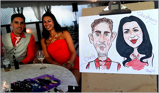 Wedding caricature maker can also diverse your celebration beforehand, by drawing attractive wedding invitations for your dearest guests or small gifts to each of your dearest invited friend and relative. Please, have a look at the samples of our works.